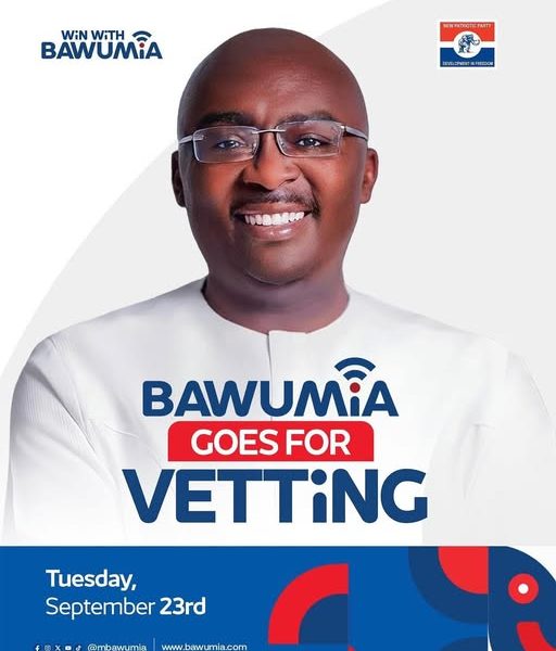 Presidential aspirant of the New Patriotic Party [NPP] Dr Bawumia has been scheduled for vetting today, Tuesday, 23rd September 2025. Social media platform dedicated...