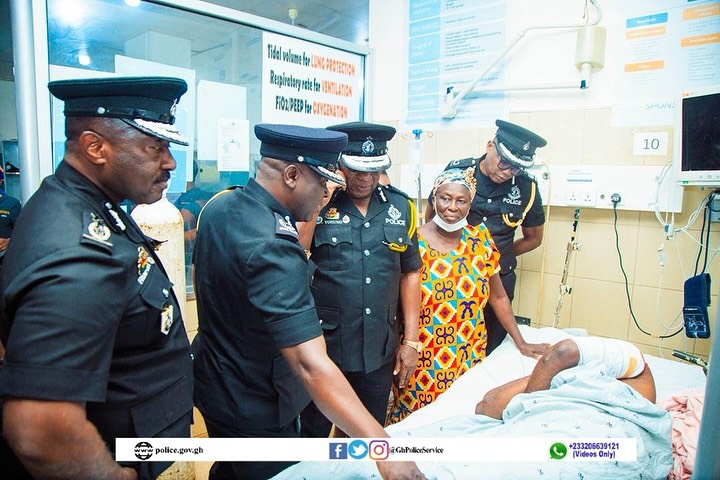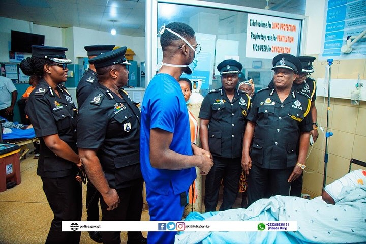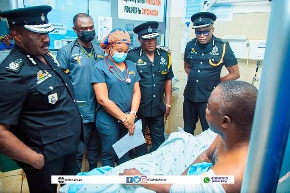 The Inspector-General of Police (IGP), Mr. Christian Tetteh Yohuno today 7th October, 2025, visited the Komfo Anokye Teaching Hospital in Kumasi to check on a police officer who was critically injured during recent violent clashes between two rival groups at Sampa, in the Bono Region.